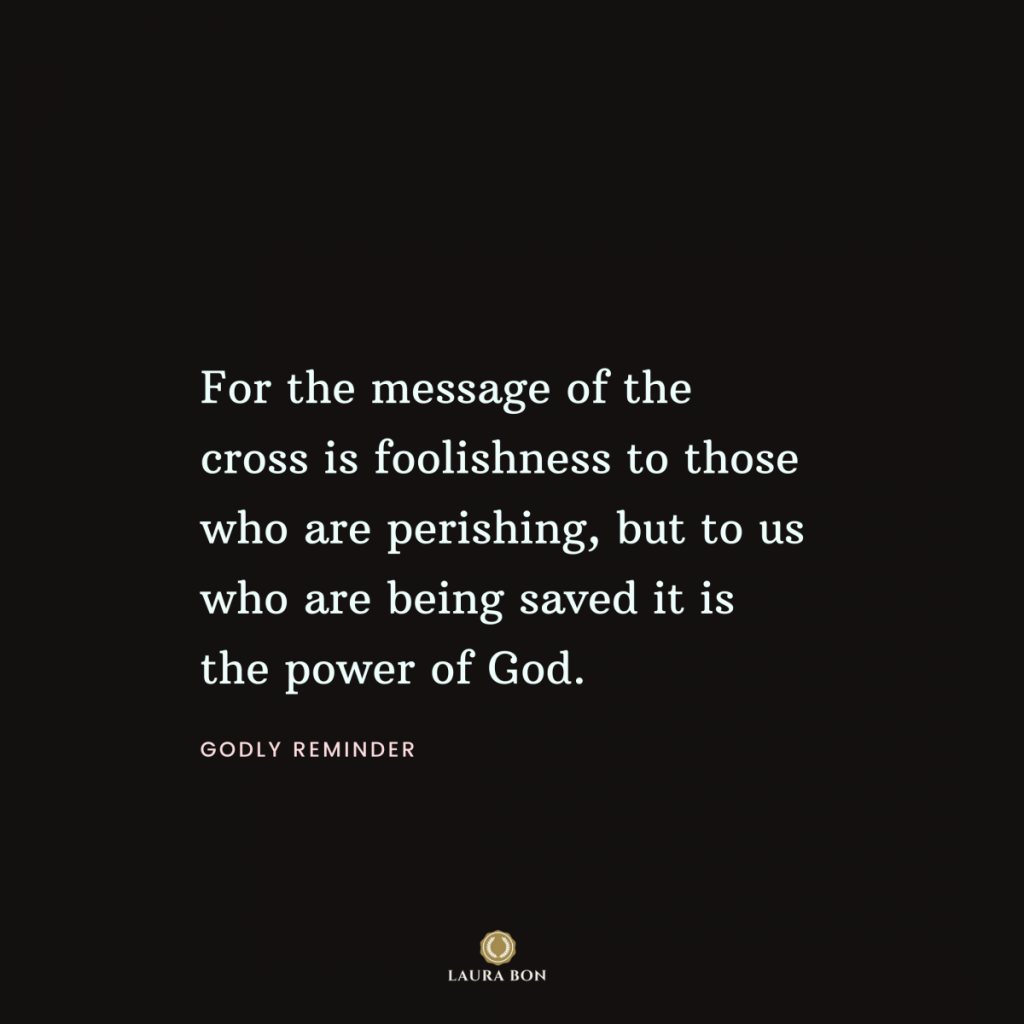 For the message of the cross is foolishness to those who are perishing, but to us who are being saved it is the power of God. 1 Corinthians 1:18