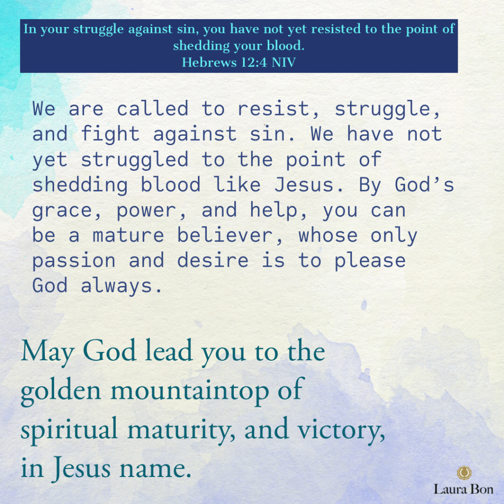 We are called to resist, struggle, and fight against sin. We have not yet struggled to the point of shedding blood like Jesus. By God’s grace, power, grace and help, you can be a mature believer, whose only passion and desire is to please God always.